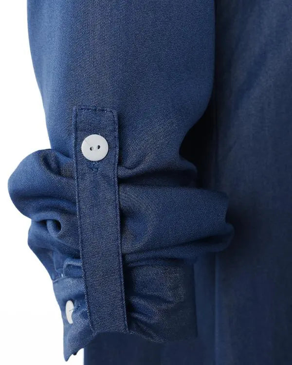 Turn-down Collar Long Sleeve Denim Shirt Dress Buttoned Casual Maxi Dress
